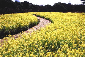 【菜の花】 もとは、中国産。古くから食用にしていることから、アブラナの名を持ち、また種子から油をとるため、ナタネの名も。