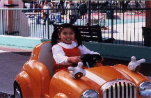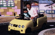 パスポートで乗車可。車線のとうりにうまく運転できたら楽しい音楽、はずれるとダート音に変わる可愛くて楽しい自動車。付き添いの方はリモコン操作でアシストすることができる。