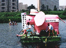 “多摩川の夏の風物詩” 恒例の 「狛江古代カップ多摩川いかだレース」