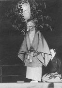 半能 「高砂」は、「高砂や、この浦舟に帆を上げて…」と結婚式によく聞かれる曲。遠く離れた高砂と住吉に生える松の精が老夫婦となって現われ相生といわれる理由を語る前段と住吉の神が来臨し人々に幸福を授ける後段に分かれます。