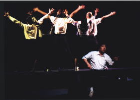「青春デンデケデケデケ」は1993年の下北沢・駅前劇場で文化座のイメージを突き破る若々しいレパートリーとして誕生し、そして1995年の本多劇場での再演の後、全国公演へと旅立ちました。2000年までに、演劇鑑賞会、おやこ劇場、公文協、生協、高校を初めとした芸術鑑賞教室、そして実行委員会等さまざまな主催者の方にお世話になり、幅広い観客のみなさんに観ていただき、300回以上のステージを重ねてきました。