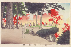 井上安治「東京真画名所図解 滝ノ川紅葉 」(16.6cm×11.2cm)