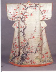 写真は、酒井抱一「梅樹下草模様小袖 白絖地 描絵」 江戸時代