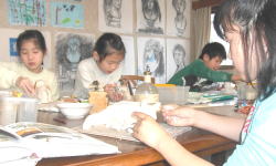 美術専門家と芸大卒生のスタッフで個別の指導を試みながら描く力を育てます。