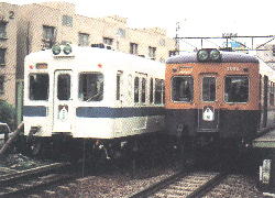 (写真)2600型〔新塗装第1号編成(左)と旧塗装車(右〕)