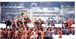 ■内 容 =新成人を祝うとともに、一年間の無事を祈願して4基の神輿が海に入ります。