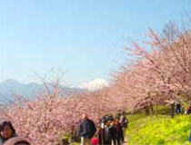 松田山の斜面で約260本の早咲き桜(河津桜)の、一足早い桜まつりが開催される。