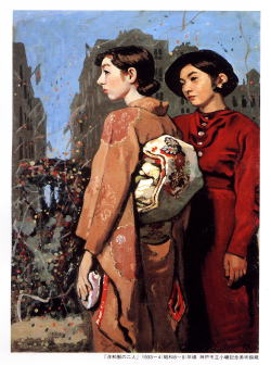 【小磯良平】 1903年、神戸市生まれ。藤島武二に師事し、東京美術学校(現東京芸術大学)在学中から帝展に入選を果たすなど、若き日よりその画才を開花。卒業後も精力的に創作に専念、写実的な絵画表現の探求を深め、静譜で端麗な芸術世界を構築した。