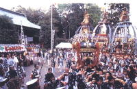 内容=威勢のいいあばれ神輿や山車の上に加藤清正、熊谷直実、先代萩の男の助のからくり歌舞伎人形が飾られた人形山車3台がお囃子と共に繰り出す。