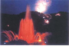 特徴=明星ケ岳に灯る大の字(長さ108m、幅7.5m)と打ち上げ花火のパランスが最高です。