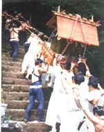 内容=重さ約200kgの神輿が白装束の氏子に担がれ、急勾配の男坂を下り、上りする様は圧巻です。