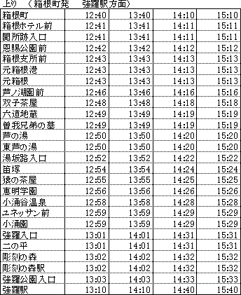 強羅駅〜小湧園(ユネッサン)元箱根港〜箱根町
