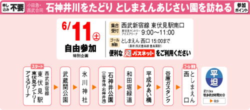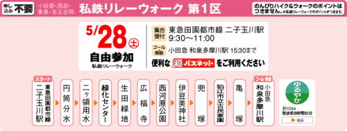 ![]() ![]() ![]() 【 参加要領 】 ■参加費=各コースとも無料(交通費、昼食、施設入場料などは参加者負担) ■参加注意=@昼食、雨具は各自持参。 Aケガ、事故等についての責任は主催者では負いかねる。 B自家用車での参加は不可。 ■申込み方法=往復ハガキに参加希望コース名と申込人数(何名でも可)、代表者の郵便番号、住所、氏名、年齢、電話番号、自宅の最寄り駅を明記のうえ、各開催日の7日前(必着)までに下記宛へ。先着順に参加カード(返信ハガキ)を送付。 ■参加ポイント=各1回参加で1ポイント。 10ポイントで漏れなく「達成賞」、抽選で20名にアウトドアシューズプレゼント。 ■宛先・詳細問合せ=〒160 -8309 新宿区西新宿1-8-3小田急電鉄梶@営業推進部 「のんびりハイク&ウォーク」係 TEL.03・3349・2166(平日9:30〜17:45)