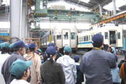 車両の検査・補修の見学、大野工場の環境への取り組み説明 |