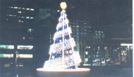 ▼元気な光を楽しむ『光のサーカス』……JR線路側2Fデッキ部分