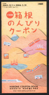 ![]() 、美術館、レジャー施設、飲食店など合計75の施設で割引や優待が受けられる特典が盛り込まれた「小田急箱根のんびりクーポン」が使えるシーズンがやってきた。 「小田急箱根のんびりクーポン」は、利用対象施設地図、特急ロマンスカーの時刻表、おすすめの観光コース、「箱根の絶景スタンプラリー」応募台紙など箱根旅行を便利に楽しめる内容がコンパクトにまとめられた小冊子。 配布対象は、2005年12月1日(木)から2006年3月31日(金)の間に利用する、「箱根フリーパス」、「冬季箱根ウィークデーパス」、「小田原・箱根湯本までのロマンスカー特急券」のいずれかを購入した人。 「箱根ガラスの森」「箱根ラリック美術館」「星の王子さまミュージアム」「彫刻の森美術館」「ポーラ美術館」の人気の5つの美術館から、2,000円で好みの2館を利用できる「ミュージアムセレクト2」プランが今回新たに加わった。 配布部数は51万部(なくなり次第、配布は終了)。 配布箇所は小田急線各駅、小田急トラベル各営業所、小田急高速バス案内所、主な旅行代理店(JTB、日本旅行、近畿日本ツーリストなど)。 また、別に、平日の箱根周遊向け商品「箱根ウィークデーパス」をさらに割り引いた「冬季箱根ウィークデーパス」も下記内容で用意されている。 ▼利用期間:2005年12月1日(木)〜2006年3月16日(木) 祝日および12月29日(木)〜1月3日(火)除く。 ▼利用開始日は、月曜日〜木曜日に限る。 ▼有効期間2日間 ■詳細問合せ=小田急お客さまセンター TEL.03-3481-0066(9:00〜19:00)
