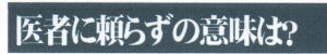 「医者に頼らず」といっても「医者に行くな」という意味ではなく、ましてや「医療行為を受けるな」などと言うことでもありません。十分に検査を受け、説明を聞き、薬を飲んで、必要な時には手術を受けていただきたいのです。なぜなら日本の医療検査や手術の技術水準は世界的に高いからです。ただし病気の名前と程度がわかっても治せるとは限らないのですが……。