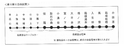箱根登山』線小田原駅から箱根登山ケーブルカー早雲山駅まで1往復した場合、通常2,120円かかる運賃が1,500円で利用できる。