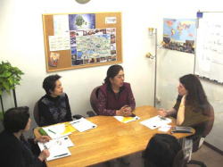 | 少人数制クラスで女性外国人講師がやさしく指導します。1フレーズ10単語以内の短い基本センテンスの使い方をおぼえることにより、旅行や日常ですぐに役立つ英会話が身に付きます。 |