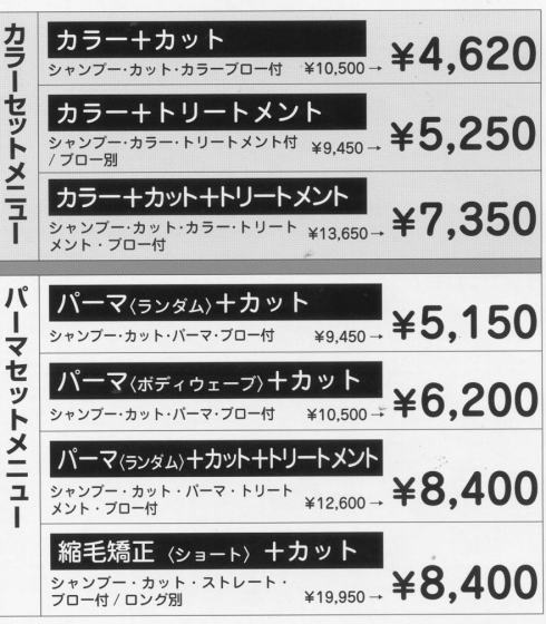 姉妹店「美容室カリーナ」リニューアルオープン 下北沢南口から徒歩30秒!本多劇場ビル2Fにリニューアルオープンしました。 お子様からミセスまでの皆様に愛されるお店を目指しています。 カリーナスタッフ一同心よりお待ちしております。 ラ・フィエスタ本店と同じ料金(下記)で施術いたします。 ■問合せ=TEL.03-3467-4652 Copyright(c)1999-2007 Mysoft co. ltd. All Rights Reserved.