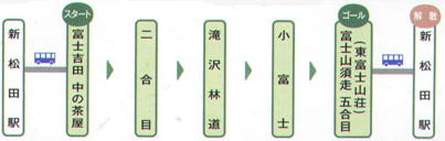 ▼ゴール:富士山須走五合目(東富士山荘)瀬15:00まで/解散:新松田駅 |