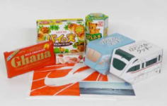 ロマンスカー・VSE の袋にロマンスカークッキーなどのお菓子を詰め合わせたもの