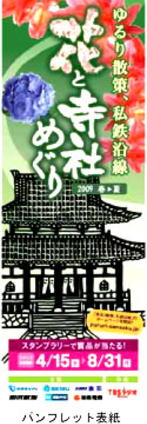 【内 容】 参加各社の沿線にある花と寺社の名所を巡り、最寄りの駅に設置されたスタンプ(以下のリストを参照)を集めると、抽選で賞品がでます。スタンプ用の台紙は、各社の全駅に。