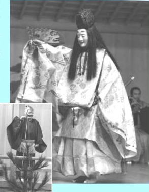 旅憎が訳を開くと、ここは昔源融大臣の邸宅で 広大な庭に「塩釜の浦」を写した海辺だったとの 事。さて、この老人と後に登場する月明かりの中 、優雅に舞を舞う貴公子との関係は? |