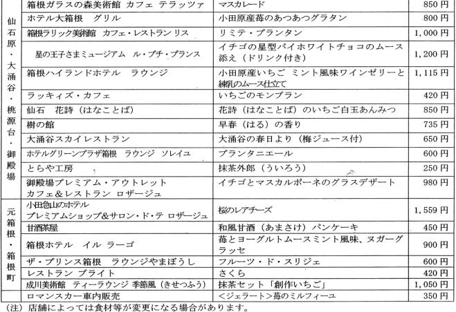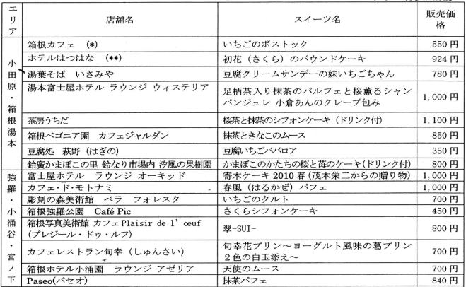 箱根地区35施設の オリジナルの和・洋スイーツ :*印…初参加店舗 **印…再参加店舗 Copyright(c)1999-2008 Mysoft co. ltd. All Rights Reserved.