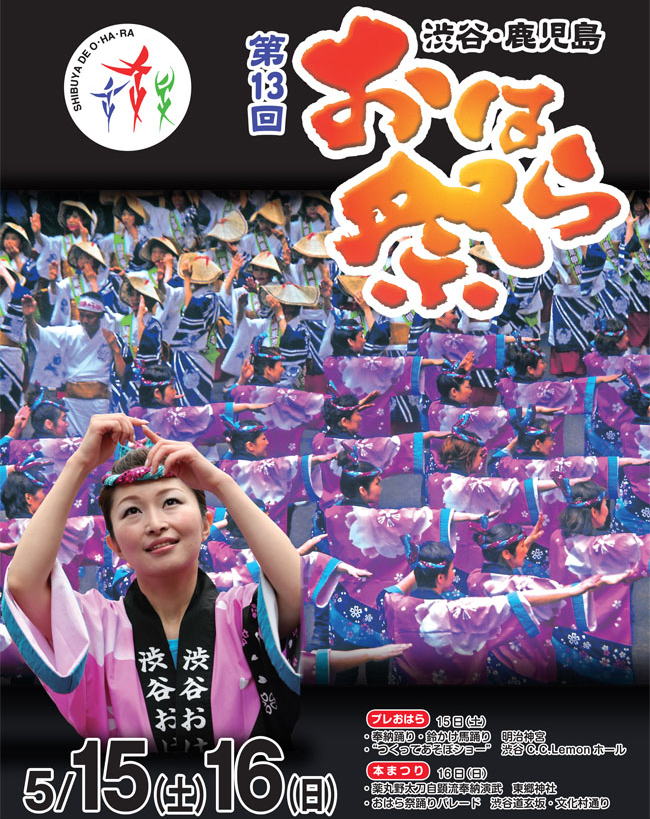 薬丸野太刀自顕流奉納演武(東郷神社神殿前広場)9:30〜10:00/踊りパレード(道玄坂・文化村通り=鹿児島、関東2,000名の踊り連が、伝統的な踊り「おはら節」、「ハンヤ節」などを華麗に踊る)12:50〜16:00