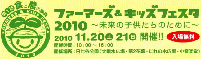 第1回食と農の祭典実行委員会では、2010年11月20日(土)、22日(日)の2日間、農業の魅力や楽しさを子供達に紹介する「ファーマーズ&キッズフェスタ」を開催します。