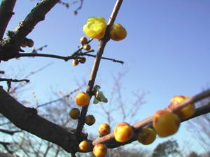 約60種・本数約1100本(郷土の森の梅)。早咲きの「八重寒紅」(やえかんこう)、「八重野梅」(やえやばい)、「唐梅」(とうばい)、「白加賀枝垂」(しらかがしだれ)など。 |