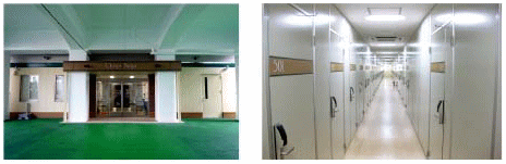 小田急クローゼットのイメージ(小田急クローゼット成城) ※(左)施設外観(右)通路部分