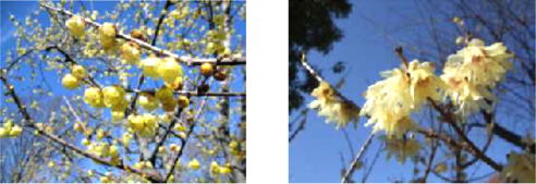 ロウバイ(左は2月中頃、右は12月中旬の写真です)