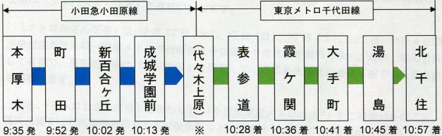 ●小田急線本厚木駅→東京メトロ千代田線北千住駅までの片道運行。