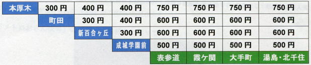 | 特急料金(乗車券別途、子供料金は表記額の半額・10円未満切り上げ) |