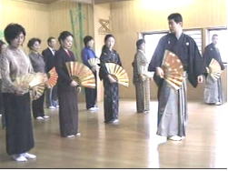 ▼老若男女、子供から大人まで声を出して謡い、桧の舞台に上がって舞を舞ってみましょう。体と能のトレーニングで健康に。 |
