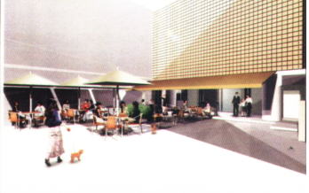 リオープンと同時に地下中庭にカフェもオープン(写真左)。美術鑑賞後は緑と青空の下、フランスのブルターニュの郷土料理、そば粉のクレープ「ガレット」や、季節のデザートなどで、カフェ・タイムがくつろげそう。