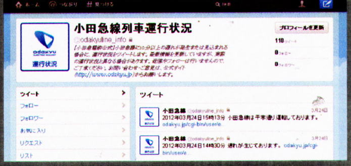 Twitterでの小田急線列車運行状況の配信(イメージ) |