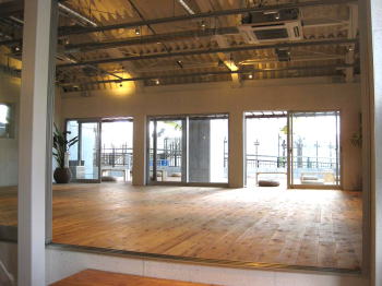 プログラムの約7割はこのスタジオ内でのもの。プラスして、多摩川の河川敷でランニング、ウォーキングコースや木陰でのヨガなどアウトドアものがある。