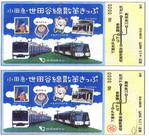 小田急電鉄鰍ナは、東京急行電鉄鰍ェ発売している東急世田谷線全線が乗り降り自由となる「世田谷線散策きっぷ」に加え、小田急下北沢駅から成城学園前駅間も乗り降り自由となる「小田急・世田谷線散策きっぷ」を、