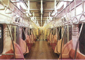 通常の運行には蛍光灯比較約62%削減の「調光レベル1」。現在、節電対策として実施中の一部蛍光灯を外して運行している車内と同等の明るさです。 |