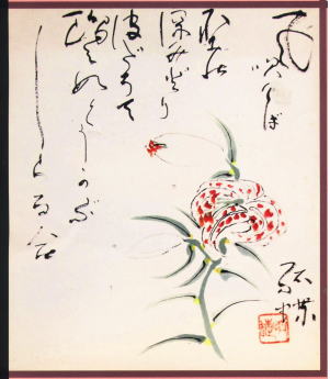 こうした花々に対する愛着のあかしとして、古くから多くの詩歌が作られてきました。特に近代以降においては、伝統的な価値観にとらわれることのない自由な美意識のもと、私たちの生活に根差した、実に豊曉でかつ多彩な世界が展開されています。これらの詩歌はときに、作家自身の手によって掛幅や色紙、短冊などのかたちに揮毫されてきました。