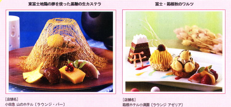 箱根エリア恒例の「箱根スイーツコレクション」が12回目を迎え2013年11月10日(日)まで開催中。今回のテーマは富士山世界文化遺産登録を記念して“富士山スイーツ”。期間中、「秋の箱根でプチ贅沢キャンペーン」プレゼント、女性にうれしいレディースプラン「箱根でおしゃべり」のお得な1泊2日プランがあります。