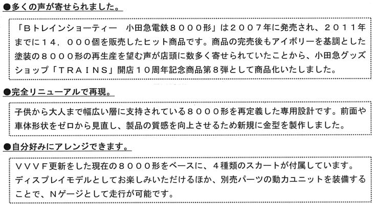 | 「Bトレインショーティー小田急電鉄8000形」 |