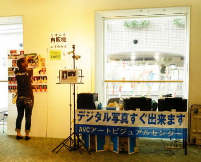 入場受付を済ませるとまず舞台写真のプリント販売ブースが目に。 プロカメラマンが収めた出演者のステージ姿を、その場ですぐにプリントアウトして販売している。写っているのはピンクや水色などのドレスに身を包んだ出演者たち。お着物の方やおめかしをした方、買い物姿の主婦なども。女性の出演者の方が圧倒的に多い。パンフレットをみると¥85%が女性といったところだ。