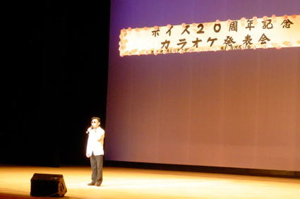 響き渡る歌声、拍手。ボイス音楽アカデミー主催「チャリティカラ オケ発表会」の会場は、お年寄りの方々の、しかし若さあふれる活気 に満ちていた。出演者もたまの舞台と、普段の姿とはかえた衣装に身