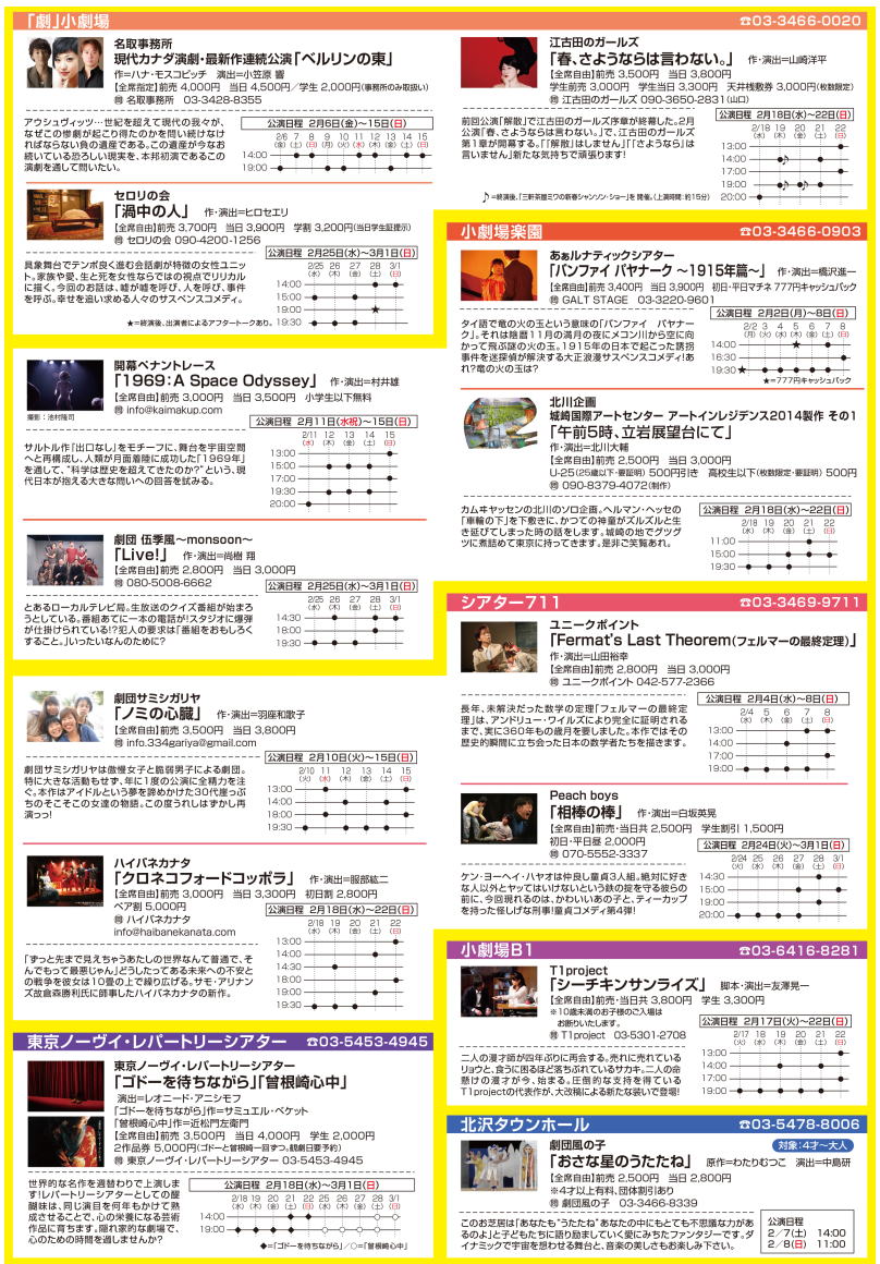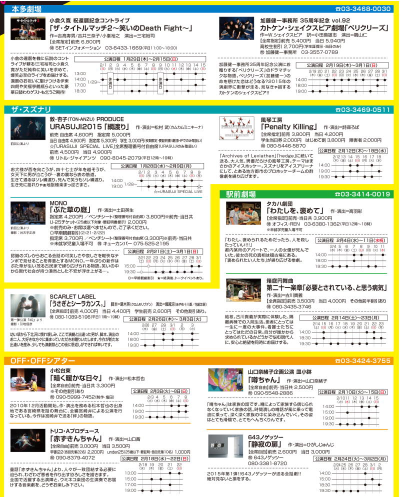■会  場 本多劇場、ザ・スズナリ、駅前劇場、OFF・OFFシアター、