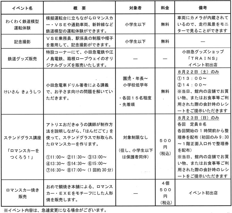 小田急電鉄㈱では8月22日・23日の2日間、新百合ケ丘駅前の商業施設「新百合ケ丘エルミロード」1F吹き抜け広場で、夏休みファミリーフェア『鉄道まつり』を開催します。 |