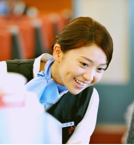 大島:生半可な気持ちではできないな、と思いました。列車が動いている中で60㎏ のカートを動かすのがとても大変でした。あと、言葉使いやお客様への対応とか、レディとしてのお行儀をすごく学べた気がします。